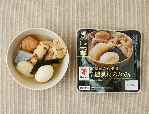 かつおの旨みと香りがあるタレで味付けした玉こんにゃくです。そのままでも、温めてもおいしい商品です。